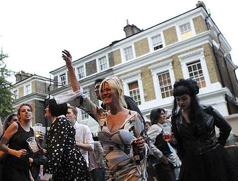 Fans gather around flowers and tributes near the home of British singer Amy Winehouse in London, Monday, July 25, 2011. Amy Winehouse, the beehived soul-jazz diva whose self-destructive habits overshadowed a distinctive musical talent, was found dead Saturday, July 23, 2011 in her London home. She was 27.